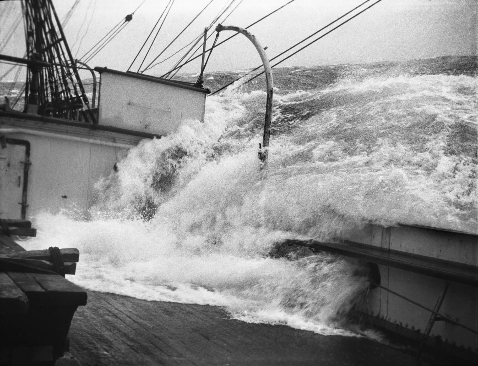 “Het roer schopte en beukte als een muilezel als er weer een golf tegen de achtersteven botste. Het was een kwestie van volhouden, maar de bittere kou, de gebroken en lege binnacle voor me, en de golven die over de zijkant bleven komen en rond mijn voeten spoelden, waren niet bemoedigend.” Citaat uit De laatste reis van de Herzogin. Het was van het grootste belang dat de luiken naar het ruim goed waterdicht werden afgesloten. Als de klampen en dekzeilen zich hiervan in een storm loswerkten, kon een schip heel snel vollopen en zinken. Iets wat nogal eens gebeurde.